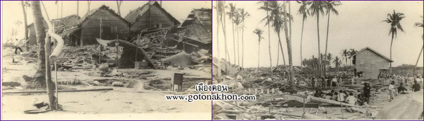 ภาพความเสียหายหลังจากพายุ แฮเรียต ผ่านไป ที่แหลมตะลุมพุก ภาพจากหอสมุดแห่งชาตินครศรีธรรมราช