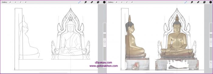 พระครูกาเดิม(ทอง)เป็นพระช่างในราว พ.ศ.2460 ท่านได้นำเอารูปแบบของวิหารหลวงไปปรับปรุงเป็นอุโบสถ์วัดจันทาราม เมื่อพิจารณาจากวิธีการพรรณนาระยัต่างๆ ขององค์พระบรมธาตุในคำกลอนโดยละเอียด พระภิกษุผู้ประพันธ์กลอนเพลงบอกเรื่องระยะของพระบรมธาตุและโบราณสถานในวัดพระบรมธาตุ ก็น่าจะเป็นพระที่ใฝ่ใจการช่างด้วยเช่นกัน