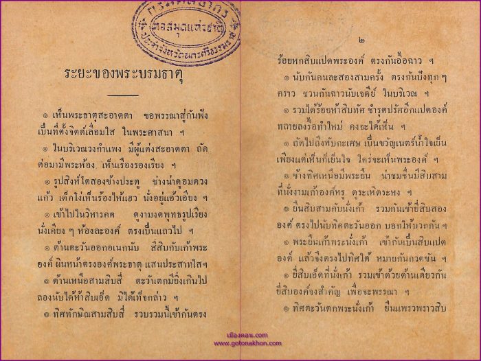 กลอนเพลงบอก เรื่องระยะของพระบรมธาตุ